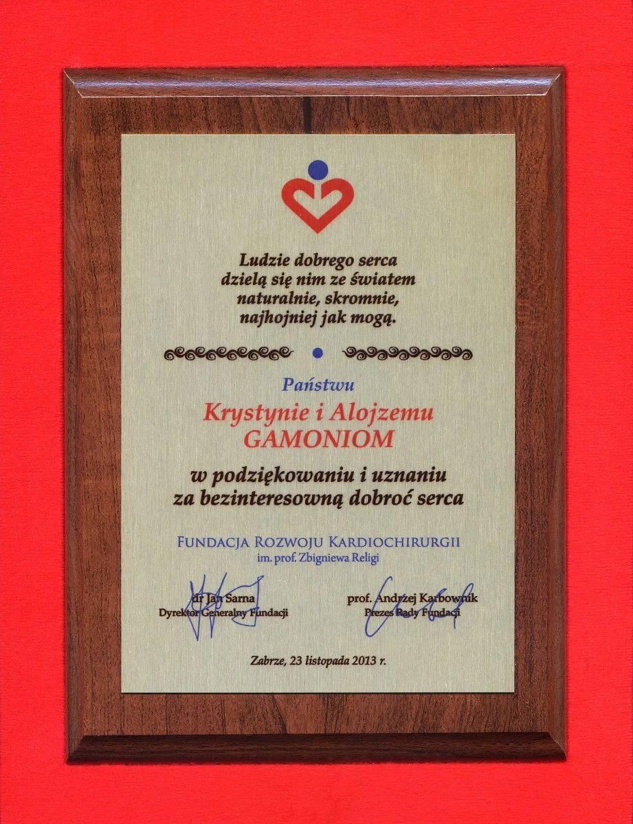 Na tych wartościach opiera się dziś działalność Funduszu Stypendialnego imieniem Alojzego Gamonia. Powołanie Funduszu było możliwe dzięki Jego pracy i sukcesom, a fundamentalne cele statutowe nakreślił mój ukochany Alek jeszcze za swojego życia, bezinteresownie wspierając innych swą wiedzą, doświadczeniem i zasobami materialnym, na które sam zapracował.